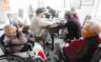 快乐的时光总是那么短暂,2个小时幸福的时光悄悄地溜走了,11点了,老人们到了吃饭的时间我们也该离开了,同学们搀扶着老人进入食堂的饭桌,叮嘱老人注意身体,依依不舍地离开了,老人的眼中含着不舍的泪花,志愿者们也流下了牵挂的泪水。